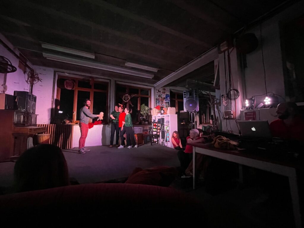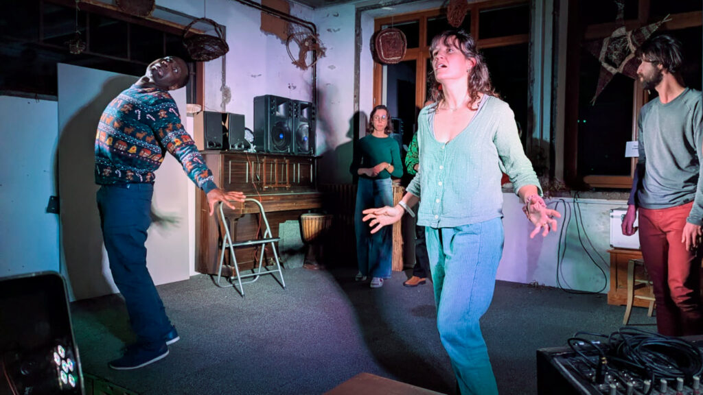 Les mardis soir, nous nous retrouvons pour explorer et pour jouer. Jouer dans tous les sens du terme. Nous nous entraînons sans relâche à retrouver ce goût enfantin d’inventer de nouveaux mondes, de les faire vivre et de les donner à voir. 🎭
